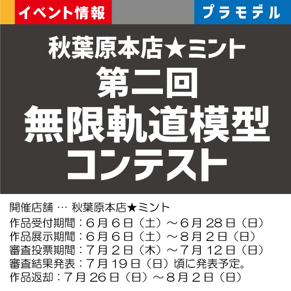 開催日:作品受付期間:2026年4月4日(土)~作品返却:2026年6月7日(日)場所:イエローサブマリン 秋葉原本店★ミント内容: 急な告知ですみません!「ミキシングモデルコンテスト」、…詳細を見る -
