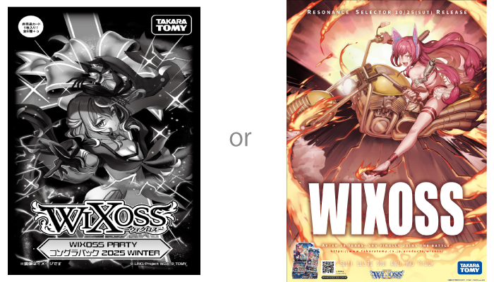 「ディーヴァグランプリ2025AUTUMN」では 予選の最終戦まで勝ち残ったセレクターを対象にハッシュタグキャンペーンを開催!! 参加してくれたセレクター全員に「WIXOSS PARTY コングラパック 2025 WINTER」1つ もしくはWX25-P2「RESONANCE SELECTOR」販促ポスター1枚をプレゼント!! 是非、共に戦い抜いたデッキをアピールしてください!! ①使用したデッキの写真を撮影 ②ハッシュタグ 「#ディーヴァグランプリ完走」つけてXに投稿 ③ジャッジステーションでポストした画面を提示 ![]() ※当日のみ有効のキャンペーンとなります。 |